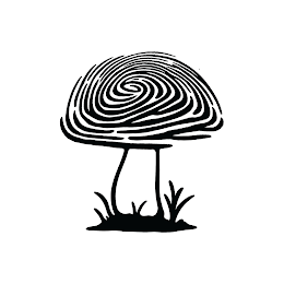 The mark consists of a mushroom sitting on top of grass and other vegetation. The head of the mushroom is made up of different lines and swirls.