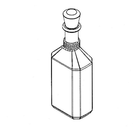 The mark consists of a three-dimensional configuration comprising a bottle with an octagonal shape, featuring a small rope wound several times around the lower portion of the bottle's neck, and an incomplete cone-shaped cork protruding from the top of the bottle.