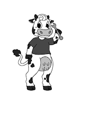 The mark consists of a drawing of a cow in a shirt standing upright and holding a wrench.