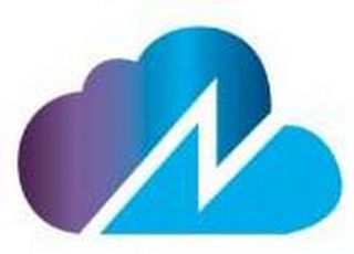The mark consists of a graphic cloud shape with a white lightning bolt transversely dividing the cloud. The top half of the cloud in varying shades of color from deep purple to blue to dark blue. The bottom half of the cloud is solid blue.