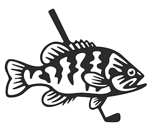 The mark consists of a side profile of a fish overlaying a golf club passing through the center.