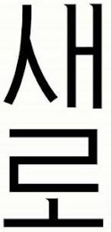 The mark consists of a design in Korean characters. The non-Latin characters in the mark transliterate to Saero and this means "New" in English.