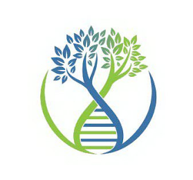 The mark consists of a tree having blue and green helical intertwined trunks with an elliptical trunk having horizontal lines alternating in colors of blue and green and expanding upwards into blue and green branches with leaves and enclosed within green and blue semicircular lines.