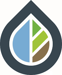 The mark consists of a droplet-shaped leaf formed by a light blue half droplet on the left, a dark green triangle on the right, a light green polygon on the right, and a brown polygon on the right, the leaf design overlaying a white droplet shape, the entire design overlaying a larger dark blue droplet shape