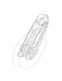 The mark consists of a pulley yoke frame with eye pad extending there from, the shade lines on the drawing are for shading purposes only. The dotted lines showing of the rotating pulley wheel is for the purpose of illustrating the position of the pulley yoke frame relative to the pulley wheel only and does not form part of the mark.