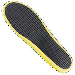 The mark consists of a three dimensional configuration of an orthotic shoe insert consisting of a yellow border and black interior portion with black zigzag parallel lines on the surface of the black portion of the insert. The dotted lines forming the exterior shape of the insert are not part of the mark and are merely intended to show the position of the mark.