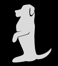 The mark consists of a left-facing outline of a dog posed in an upright seated position.