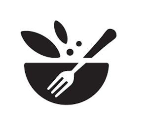 The mark consists of a silhouette of a bowl with a fork inside of it. There are leaf and dot shapes above the bowl that suggest that the bowl is full.