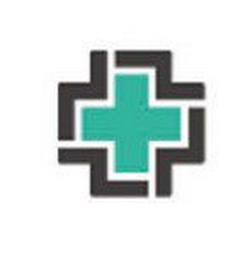 The mark consists of a teal cross with black geometric shapes around the border of the cross.