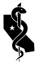 The mark consists of the image of a snake wrapped around a pole with the image over the outline of the state of California with a star where the capital of California is located.