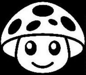 The mark consists of a short, uniformly shaped mushroom with two eyes, a smile, and five oval-shaped dots on the cap. The foregoing appears on a shaded background.