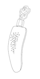 The mark consists of a three dimensional configuration of a container for candy, namely, a container in the shape of a human tongue with multiple circular taste buds. The broken lines on the container indicate placement and are not part of the mark