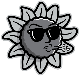 The mark consists of a sunflower design wearing sunglasses and spitting 3 sunflower seeds.