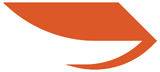The mark consists of stylized geometric shape in the color orange: #DD5829 consisting of a polygon with multiple curved sides, incorporating a triangle with one curved side connected on the right side to a curved line.