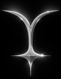 The mark consists of of a five-pointed symbol with two sharpened curved lines extending from the top and three sharpened points at the bottom. The black in the drawing represents transparent areas and is not part of the mark. Color is not claimed as a feature of the mark.