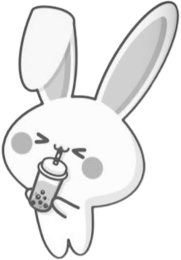 The mark consists of a cartoon depiction of a rabbit holding a cup of bubble tea. The rabbit has a one ear upright and the other flopped down; smiling eyes; and blush on its cheeks. The bubble tea is lidded, has a straw, and bubble pearls at the bottom.