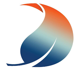 The mark consists of a stylized leaf with the color blue at the bottom of the leaf fading to mint green in the middle of the leaf which the fades to orange at the top of the leaf.