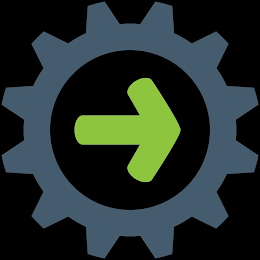The mark consists of the stylized design of a gear in blue with the stylized design of a green arrow pointing right contained within the gear. The color black represents background, outlining, shading, and/or transparent area and is/are not part of the mark.