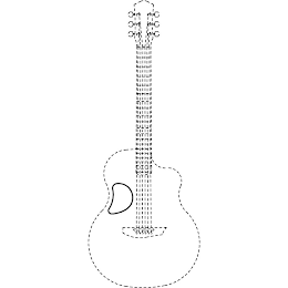 The mark consists of a three-dimensional configuration comprising a guitar featuring a fanciful bean shaped soundhole. The dotted lines are not part of the mark and serve only to show placement of the mark on the goods.