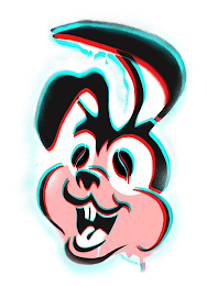 The mark consists of the design of a bunny rabbit in black and white, with red and pink face and light blue shadowing around the design.