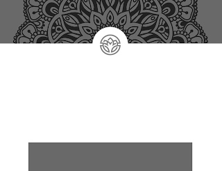 The mark consists of a half mandala design partially encircling a flower design; the mandala design is cropped at the horizontal midsection with a contrasting background appearing above and below the midsection; all above a horizontal rectangle.