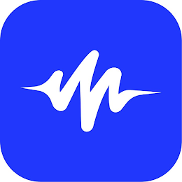 The mark consists of a simplified stylized white sound wave on a blue square with rounded corners.