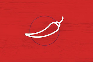 The mark consists of a stylized red hot chili pepper design outlined in white appearing over the top of a stylized black circle design. All the foregoing appearing on a red background.