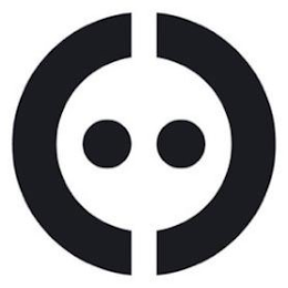 The mark consists of two half circles slightly spaced mirroring each other wherein each half circle curves around a smaller circle.