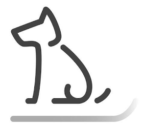The mark consists of a stylized image of a dog sitting atop a line with a curved edge.