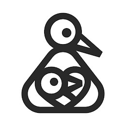 The mark consists of a geometric design of triangles and circles creating a stork with a smaller stork head imbedded inside the triangle body of the larger stork that is part of a heart.