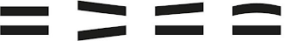 The mark consists of four symbols displayed in a row where the first symbol consists of two parallel lines of equal length, the second symbol consists of two lines of equal length that are slanted in the direction of an acute angle to the right, the third symbol consists of two lines of equal length with the lower line in a straight horizontal position and the upper line positioned going upwards from left to right so to form an acute angle to the left, and the fourth symbol consists of two parallel lines of equal length in which the top line is curved.