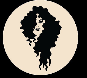 The mark consists of the face of a woman with long black curly hair covering her right eye and falling over her left shoulder against a light tan background.