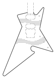 The mark consists of a three-dimensional configuration of the body portion of a guitar with sharp points and angles forming 5 distinct points of various sizes. The surface shading and matter shown in broken lines is not part of the mark and serves only to show the use of the mark.