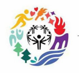 The mark consists of a stylized design of black stick figures surrounded by orange and red flames, red hearts, stylized drawings of yellow and blue people, green trees, blue waves, a stylized design of a purple building, and red, orange, and purple diamonds.