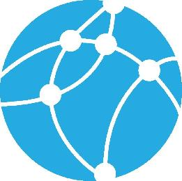 The mark consists of a large blue circle with white intersecting stripes across the center and white dots dividing out the lines.