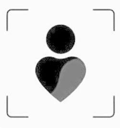 The mark consists of a circle above a heart in the center of a square, where the only visible lines of the square are the right angles that appear in each corner of the square.