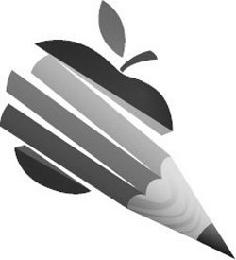 The mark consists of a pencil superimposed diagonally across the face of an apple.