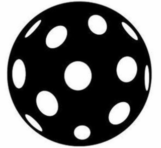 The mark consists of a stylized perforated ball which is formed by a circle having various circles inside comprised of negative space.