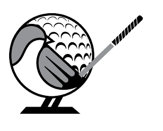 The mark consists of a bird with its tail and wing comprised of a golf club, and a golf ball positioned behind the bird.