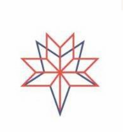 The mark consists of two overlapping stars, whereas one star is a seven pointed star outlined in red and red lines extending to the middle of the star, and the other star is a five pointed star outlined in blue. The color white appearing in the mark represents background, outlining, shading, and/or transparent area and is not part of the mark.