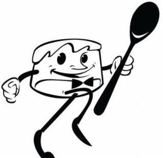 The mark consists of a cylindrical figure with a smiley face, legs and arms, wearing a bow tie and holding a spoon.