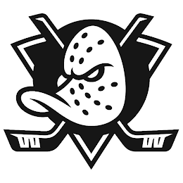 The mark consists of a goalie mask duck design in a circle over crossed hockey sticks embedded in a reversed triangle.