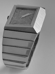 The mark consists of a distinctively three-dimensional configuration featuring a unique integrated trapezoidal, beveled watch and band that creates an architectonic appearance evoking Brutalist buildings. The appearance and shape of the mark have nothing to do with the function of the integrated watch and band..