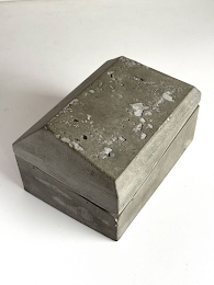 The mark consists of three-dimensional product packaging composed of a box and trapezoidal-shaped and beveled lid with 8 sides and the top of the lid has a pitted stone finish. The broken lines depicting the edges and shape of the box indicate placement of the mark on the goods and are not claimed as part of the mark.