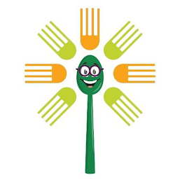 The mark consists of a design of a green spoon with a face consisting of black and white eyes, black eyebrows, purple glasses, and a black mouth with white teeth and a pink tongue. Surrounding the top of the spoon are the tops of forks in alternating colors of light green and orange simulating a flower.