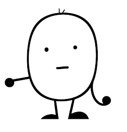 The mark consists of a fanciful character with an oval shaped body with human facial features, including two circles depicting eyes, a horizontal line depicting a mouth, two arms with a circle at the end of each arm depicting hands, two legs with a semi-circle at the end of each leg depicting feet, and two vertical lines at the top of the oval shape depicting hair.