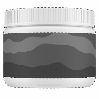 The mark consists of a three-dimensional configuration of a cylindrical supplement jar with a label affixed; the label is divided into five sections by four wavy lines with the bottom two lines running horizontally, and the third and fourth lines being diagonal, one on the left-hand side of the label and the other on the right. The broken lines depicting the jar and top of the jar indicate placement of the mark on the packaging and are not claimed as features of the mark.