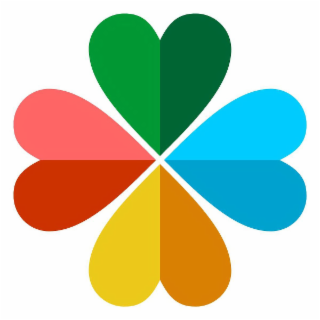 The mark consists of a stylized four-leaf clover in which one leaf is two shades of green, one leaf is two shades of blue, one leaf is two shades of yellow, and one leaf is two shades of red.