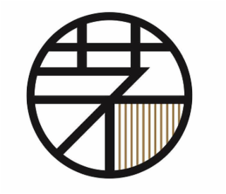 The mark consists of a black circle having three black horizontal lines, three black vertical lines, and a black line angled across the center of the circle; the lower right quadrant of the circle comprises a series of eleven thin vertical tan lines enclosed within thicker black lines above and to the left of the tan lines; white shown in the mark represents background and is not claimed as a feature of the mark.