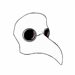 The mark consists of a white ornamental face mask with an elongated nose wearing a pair of black-lensed, pince-nez style eyeglasses with blue and red curved reflection lines on the right side of each lens. The thin black line circumscribing the white mask is for edging purposes only and is not part of the mark, as claimed.